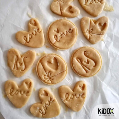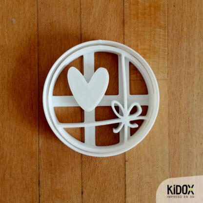 Cortador de galleta redondo y con el marcador de corazón con lazo.